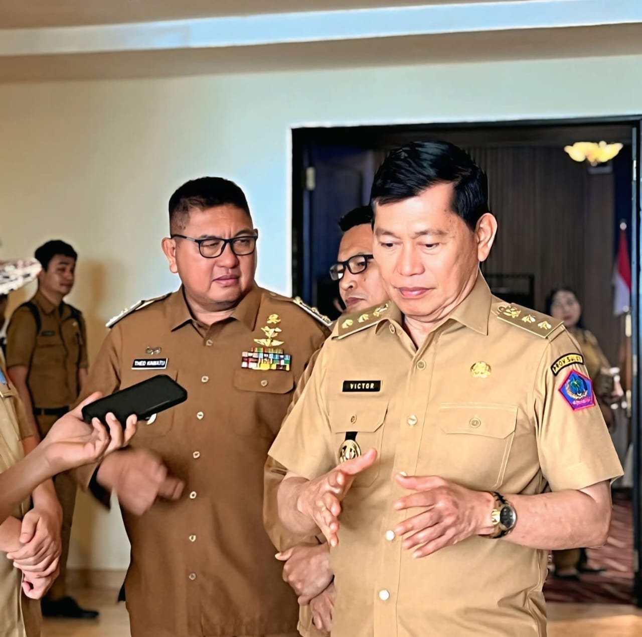Minsel, MHN – Wakil Bupati Minahasa Selatan (Minsel), Brigjen TNI (Purn) Theodorus Kawatu, S.I.P mengikuti rapat koordinasi dan evaluasi (Rakorev) tim koorfinasi penanggulangan kemiskinan daerah (TKPKD) yang digelar oleh Pemerintah Provinsi Sulawesi Utara (Pemprov Sulut) di hotel Arya Duta Manado pada Selasa, (07/10-2025.